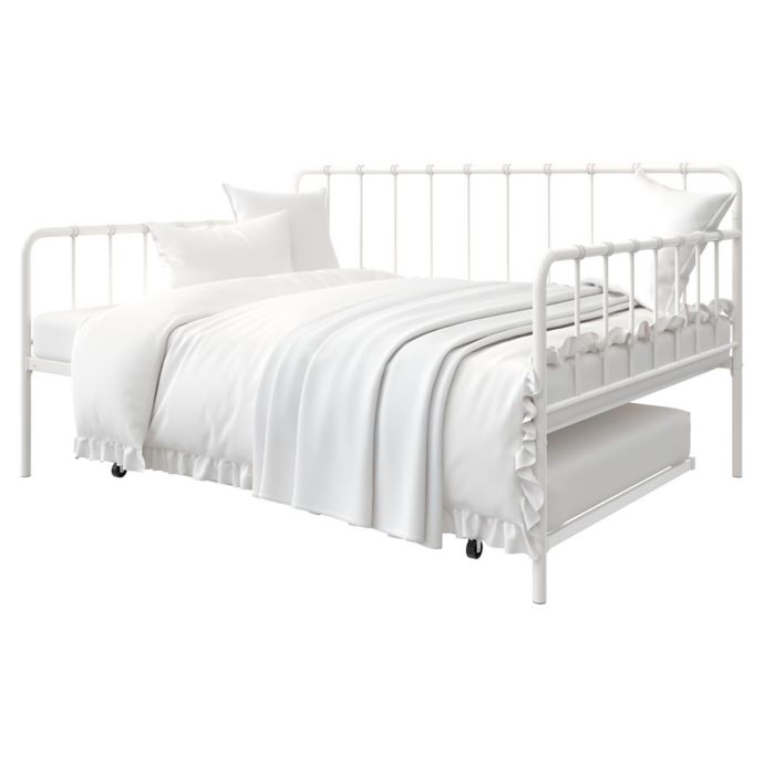 With a daybed you can have the best of both worlds since you can easily switch the same piece of furniture between sofa and bed by just moving a few cushions around. A bed is worthy of royalty, ideal for sleepover surprise! Novogratz bright pop twin metal daybed and trundle. Product titlelittle seeds monarch hill wren metal daybed with tru. Can't fit a sofa and a bed in the same room? It has a rounded panel upholstered and quilted decorative buttons. Amazon daybed with trundle twinzinus eden twin daybed and trundle set premium steel slat support daybed and roll out trundle ac modate twin size mattresses sold separatelybaxton studio darcy twin daybed with trundle in brown hillsdale augusta daybed with suspension deck and trundle in white. Brown metal twin size miami day bed frame with metal slats and pop up trundle. With its classic backless design, this daybed is a natural fit for more formal placements like modern living rooms and home offices. Dhp manila metal daybed and trundle, full size daybed and twin size trundle, multifunctional, white. Everyroom arya metal daybed with twin trundle. Best daybed with trundle reviews based on my research. Girls' glam daybed with trundle daybed with trundle in a traditional style.